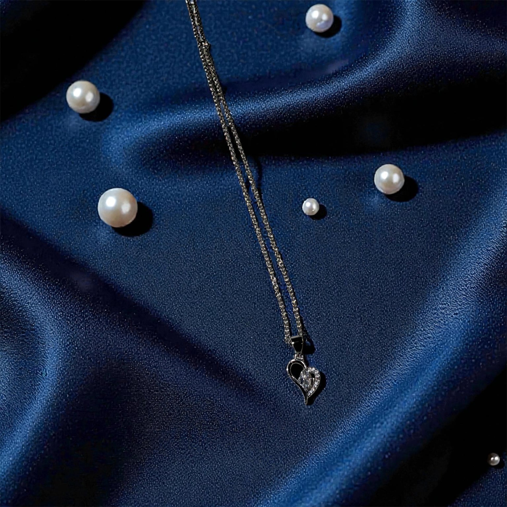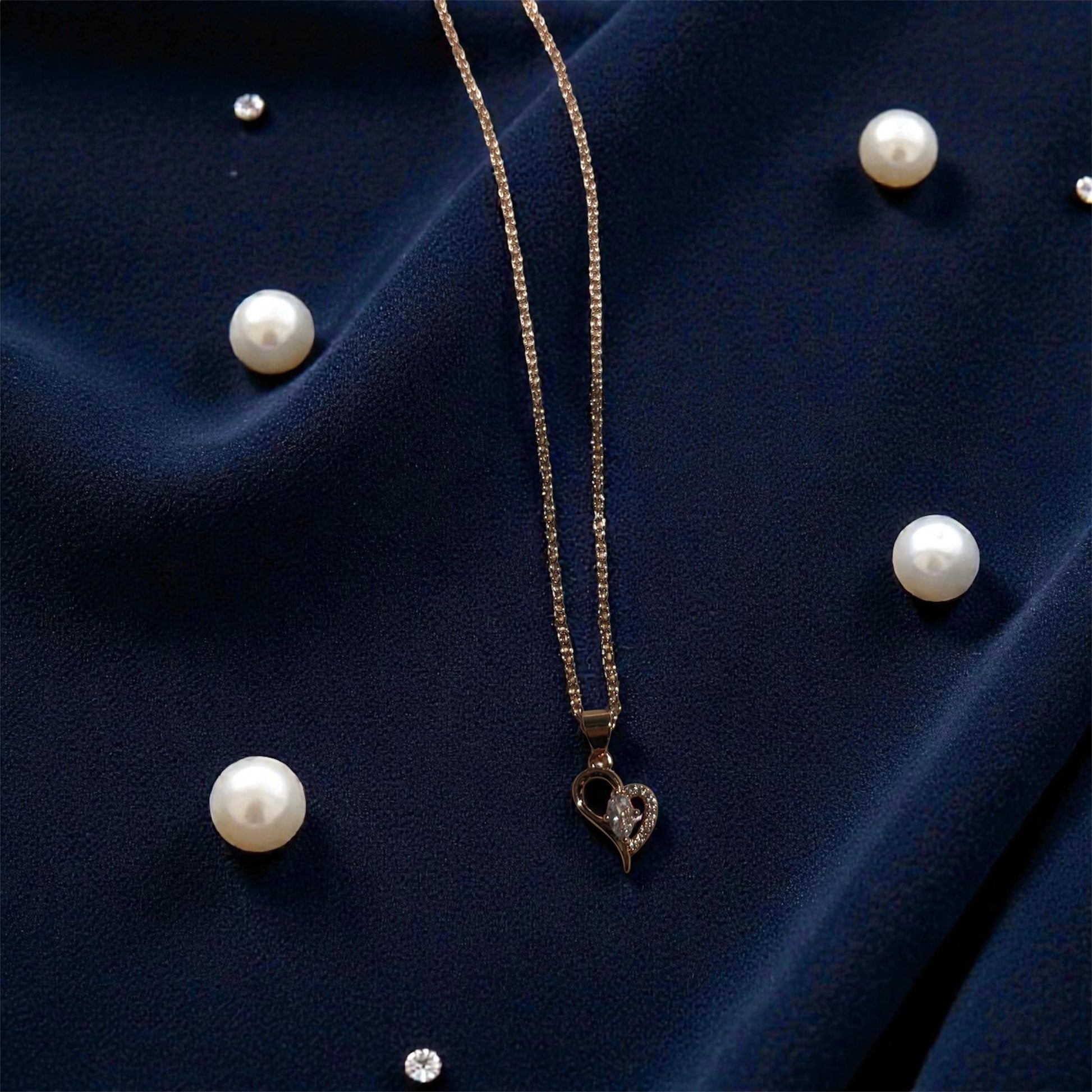 The Eterna Heart Necklace features a graceful heart silhouette accented with brilliant stones that catch the light from every angle. Its refined design makes it perfect for layering or wearing alone — understated, elegant, and undeniably luxurious.